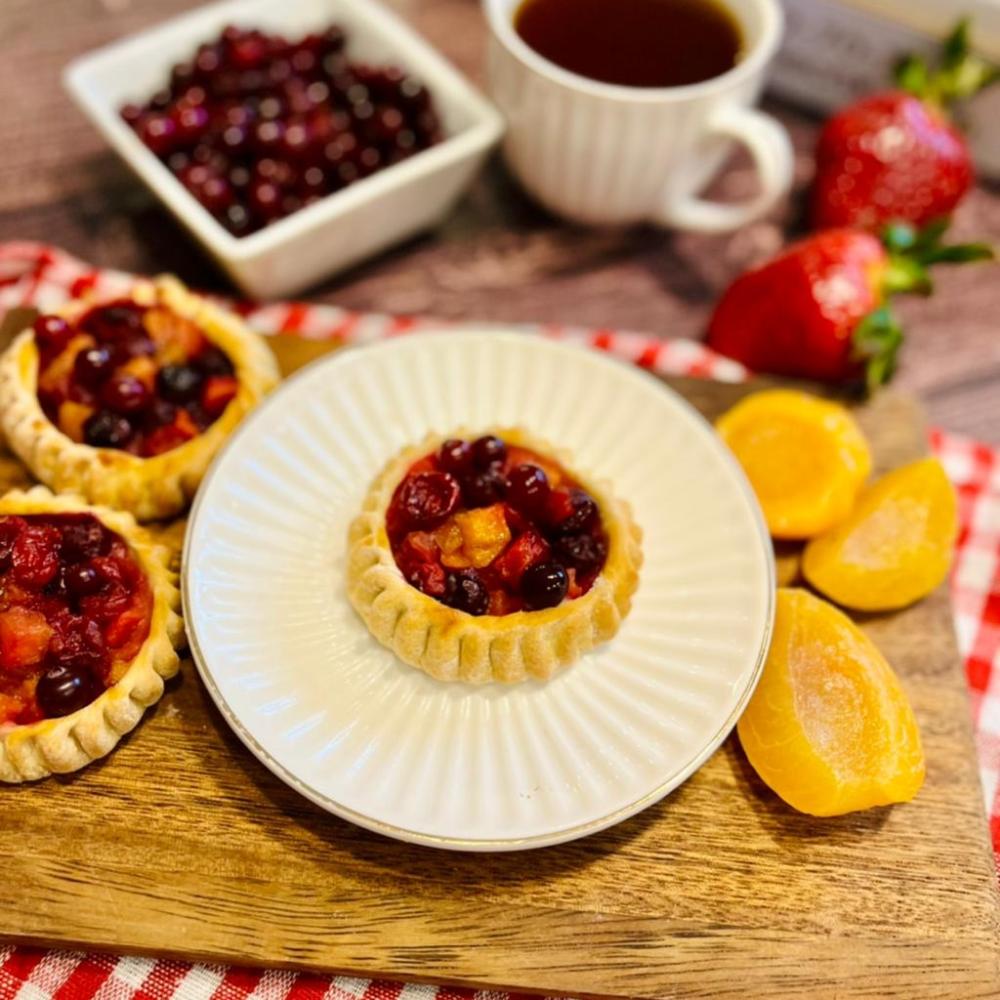Перепечки с кусочками абрикоса, ягодами клюквы и яблочным повидлом. <br>