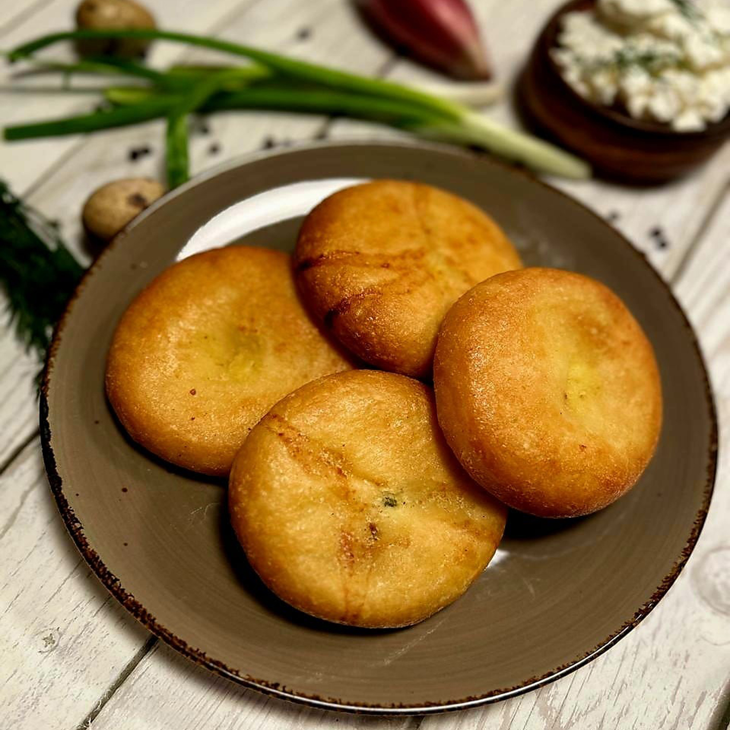 Начинка из нежного творого и свежего зеленого лука.